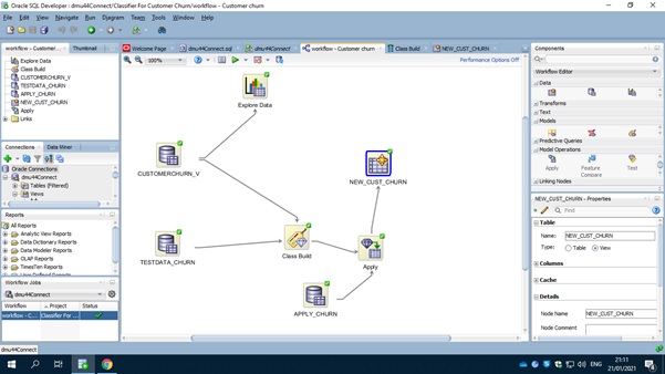 In this project I have created a classifier model using the drag and drop feature provided by Oracle Data Miner. Even though the software allows the use of SQL queries, a large amount of the tasks were carried out using just the drag and drop features. The project aims to predict customers that are likely to churn from a telecommunication company, so that management can act before this happens.